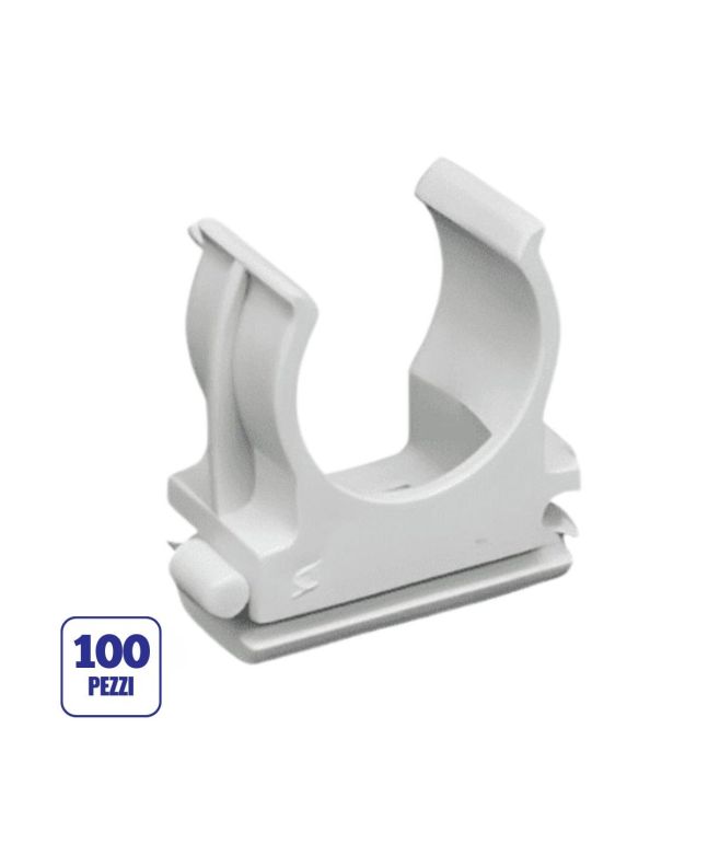 100 Clips Fissatubo a Scatto Ø32mm Grigio RAL7035 Made in Italy - FAEG