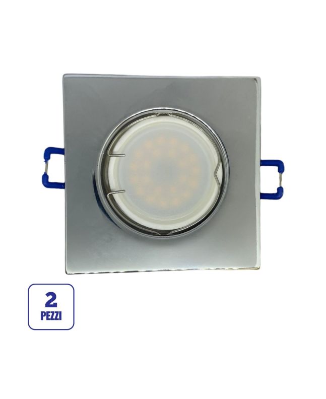 La confezione da 2 portafaretti quadrati in cromo lucido e fissi è ideale per chi cerca un'illuminazione elegante e moderna per l'illuminazione a incasso.