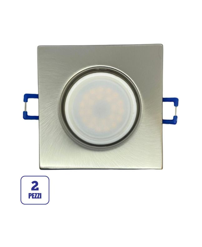 La confezione da 2 portafaretti quadrati in nickel satinato e fissi è ideale per chi cerca una soluzione elegante e funzionale per l'illuminazione a incasso.