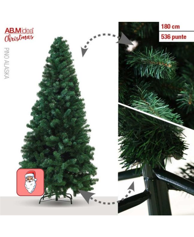 Albero di Natale Pino Alaska 180 cm 536 Punte Base Metallo - Ab.midea