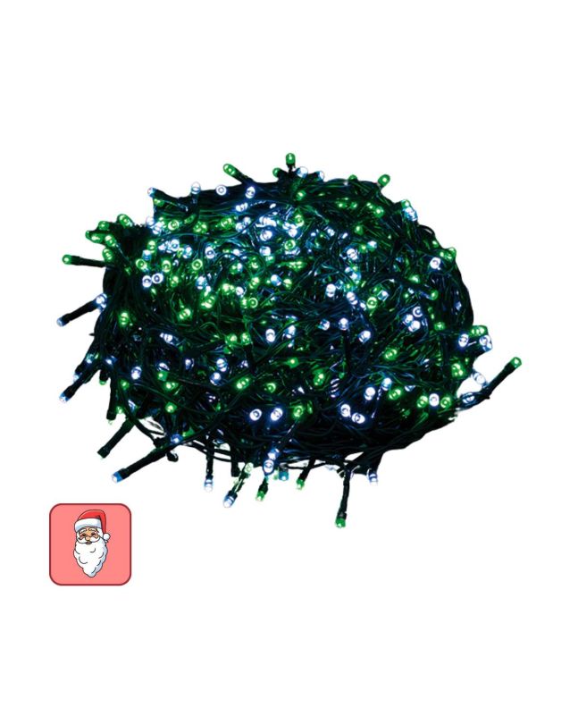 Catena 1260 LED 63m Bianco Freddo-Verde 8 Giochi IP44 - Nataluna