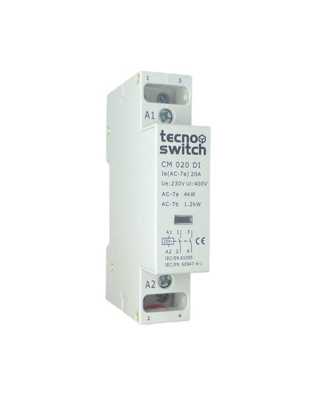 Il contattore modulare Tecnoswitch modello CM020DI è progettato per garantire affidabilità e sicurezza in applicazioni residenziali e industriali.