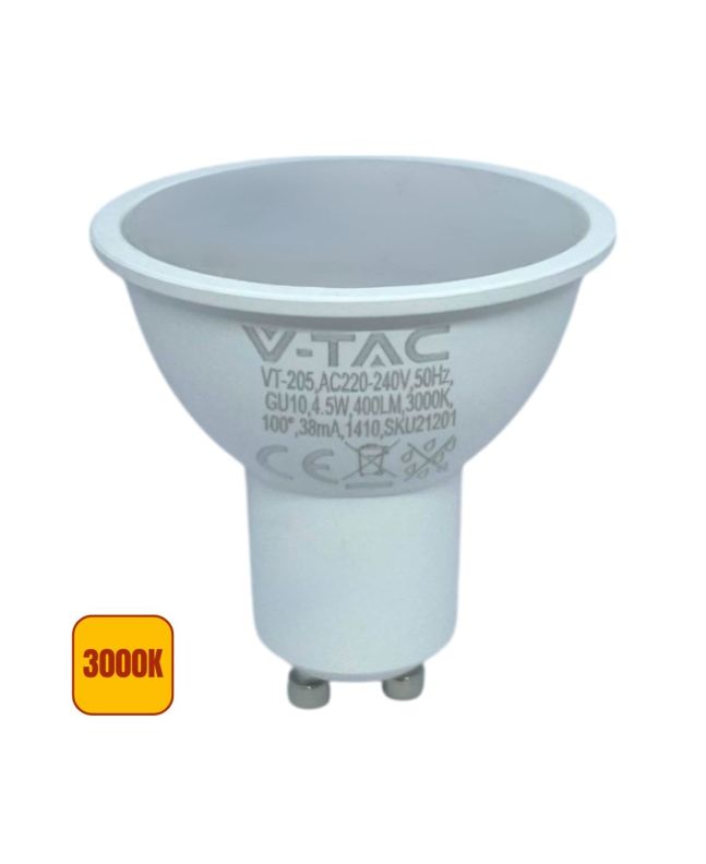 Faretto LED GU10 4,5W 3000K 400lm 100° Chip Samsung - V-Tac