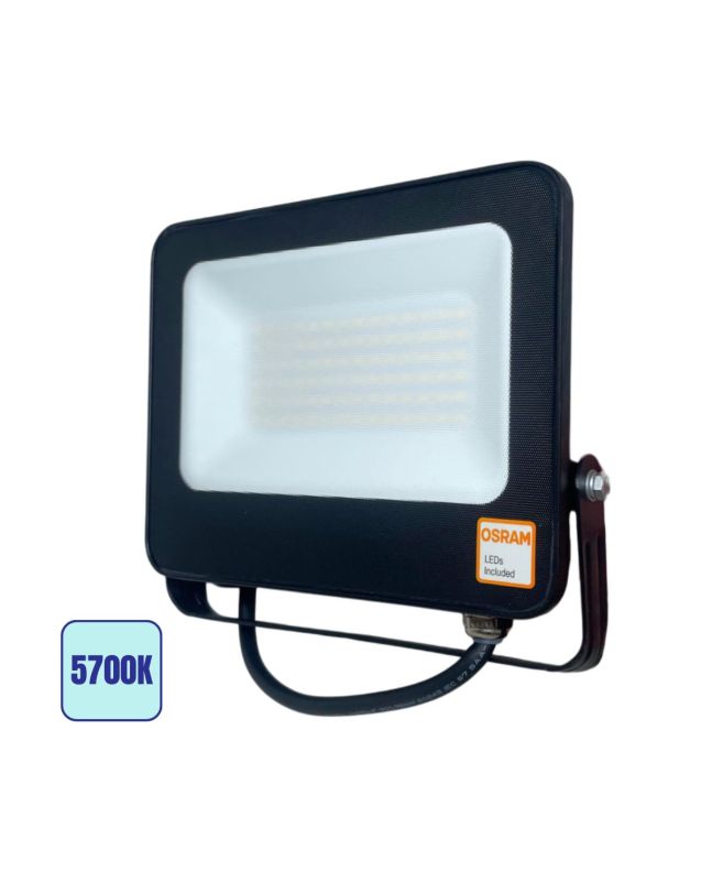 Il faro LED da esterno 50W Osram garantisce una potente illuminazione a luce fredda 5700K, ideale per ambienti esterni e aree di lavoro.