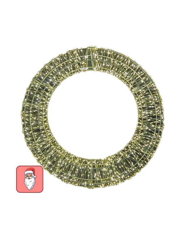 Ghirlanda luminosa Ø 70 cm con 2400 LED bianco caldo IP44. Luce fissa per interno/esterno coperto. Struttura in metallo, alimentatore incluso.
