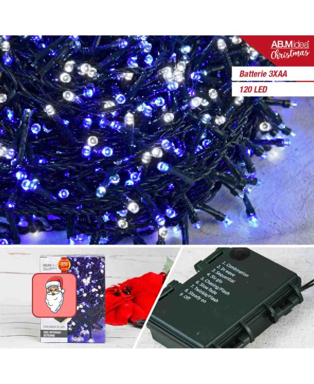 Lucciole 120 LED 5,95m Bianco Freddo/Blu A Batteria IP44 - AB.M Idea
