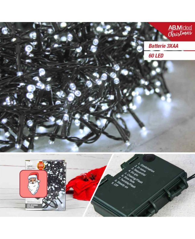 Lucciole 60 LED 2,95m Bianco Freddo 8 Giochi Batteria IP44 - AB.M Idea