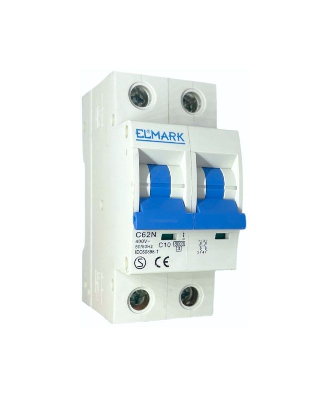 Magnetotermico 2 Moduli 2P 10A 6kA Curva C - Elmark