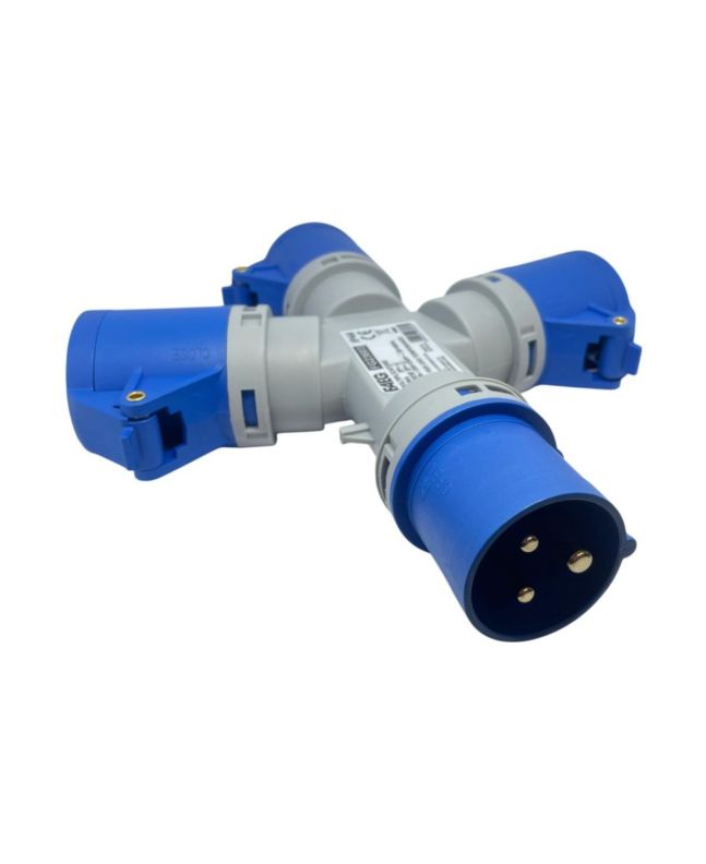 Moltiplicatore Industriale IP44 Blu con 3 Prese 2P+T da 16A per uso interno/esterno.