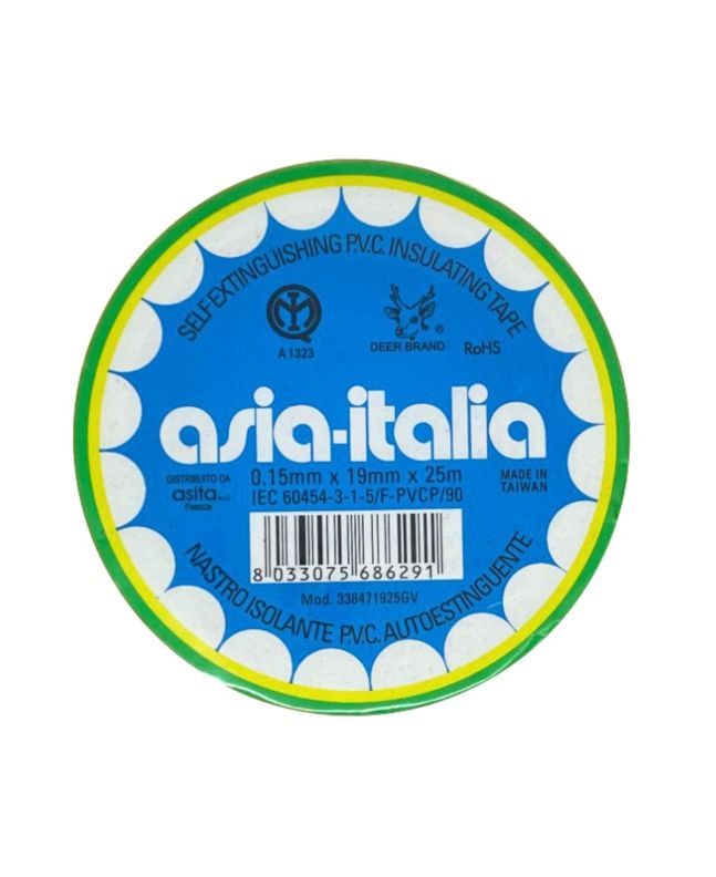 Nastro Isolante Autoestinguente Giallo/Verde PVC 0,15x19mm 25m