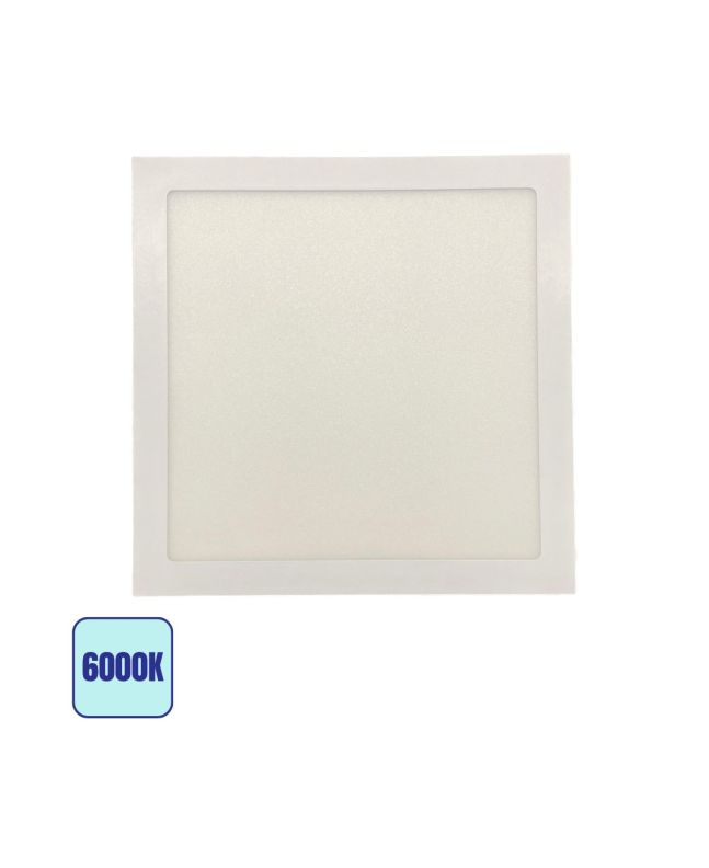 Pannello LED Slim 25W quadrato, luce fredda 6000K. Dimensioni 30x30 cm, 2000 lumen. Risparmio energetico del 90%, trasformatore incluso, plastica riciclabile.