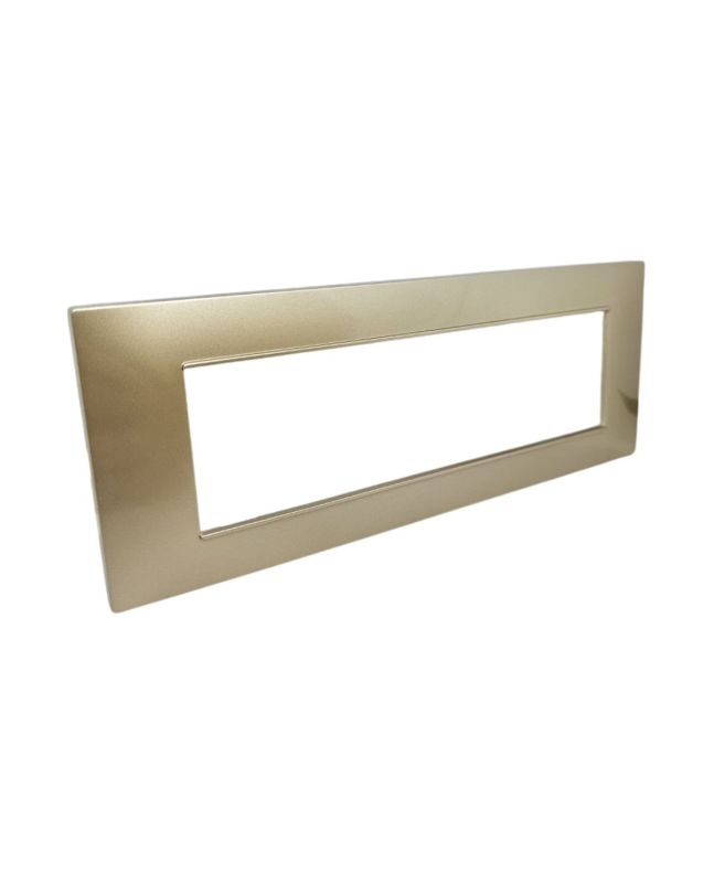 La placca da 7 posti Tot ElectricTutti i prodotti TOT ELECTRIC in finitura champagne satinato unisce eleganza e versatilità, perfetta per completare impianti con la Serie Vimar Plana da 7 moduli.