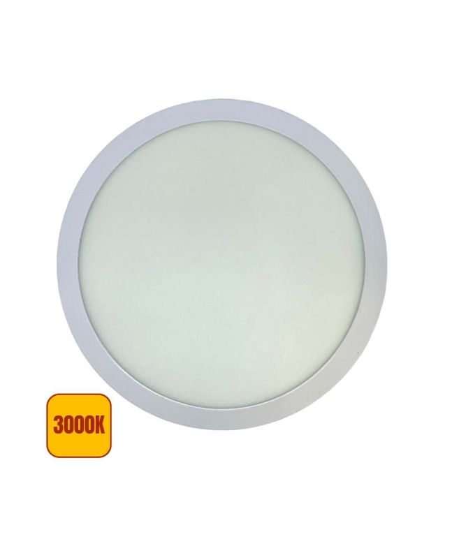 Plafoniera LED rotonda da 20W con luce calda 3000K.