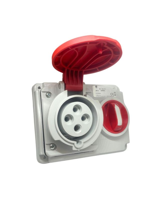 Presa interbloccata 16A a 3P+T per impianti trifase.