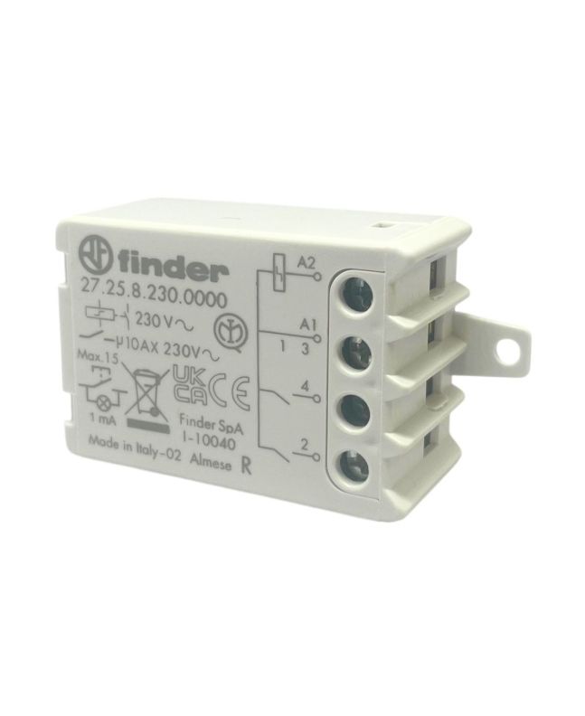 Il relè ad impulsi Finder 27.25 è una soluzione compatta e affidabile per il controllo di circuiti da remoto tramite impulso elettrico.