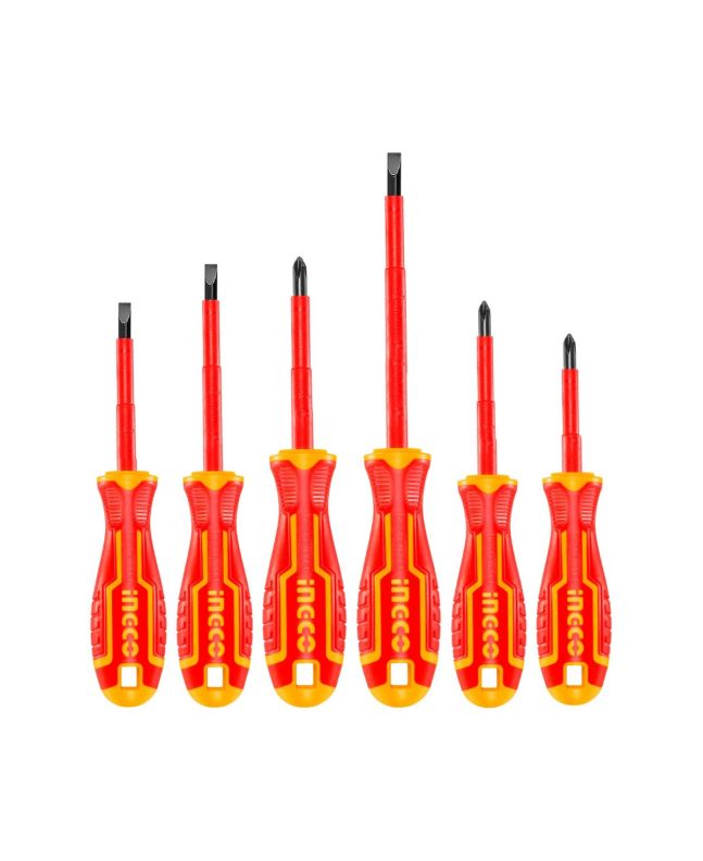 Il set di 6 cacciaviti isolati INGCO è studiato per offrire massima sicurezza e precisione in ogni intervento elettrico e domestico.