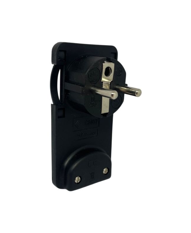 Spina Schuko 16A+T nera da assemblare, ideale per ambienti interni.