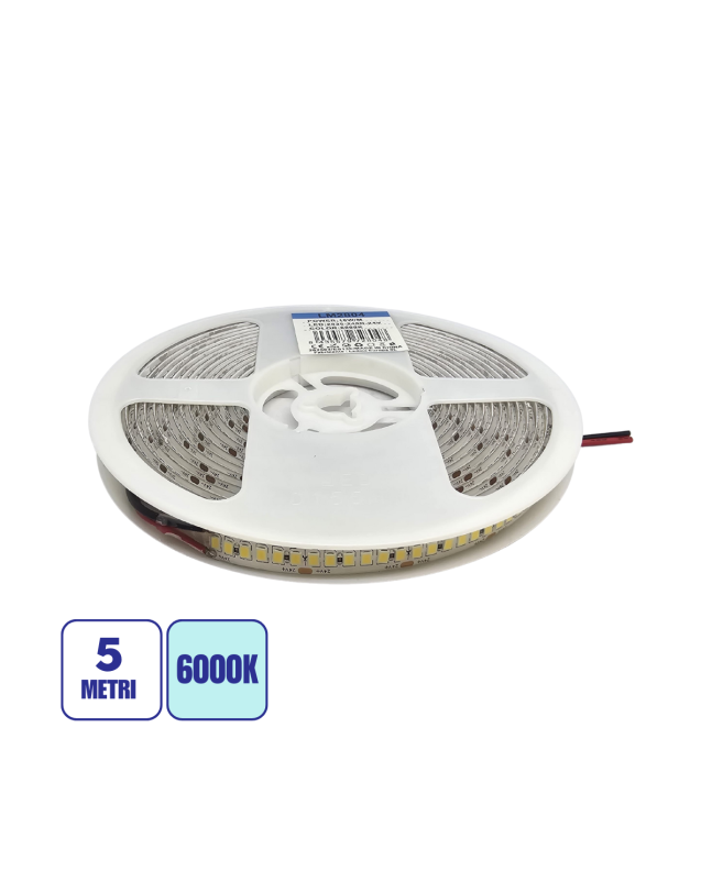 Con una lunghezza di 5 metri, questa strip LED offre una luminosità totale di 9000 lumen, garantendo prestazioni elevate e una luce fredda 6000K perfetta per ogni ambiente.